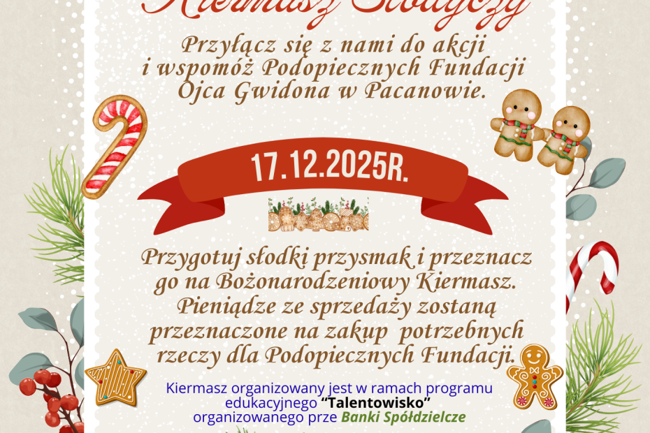 Z radością pragniemy poinformować, że nasza szkoła po raz drugi bierze udział w programie organizowanym przez Baski Spółdzielcze „TalentowiSKO. W ramach konkursu „Spółdzielnia dobrych serc” w tej edycji wspieramy Podopiecznych Ojca Gwidona w Pacanowie. … Dowiedz się więcej »Kiermasz Świąteczny
