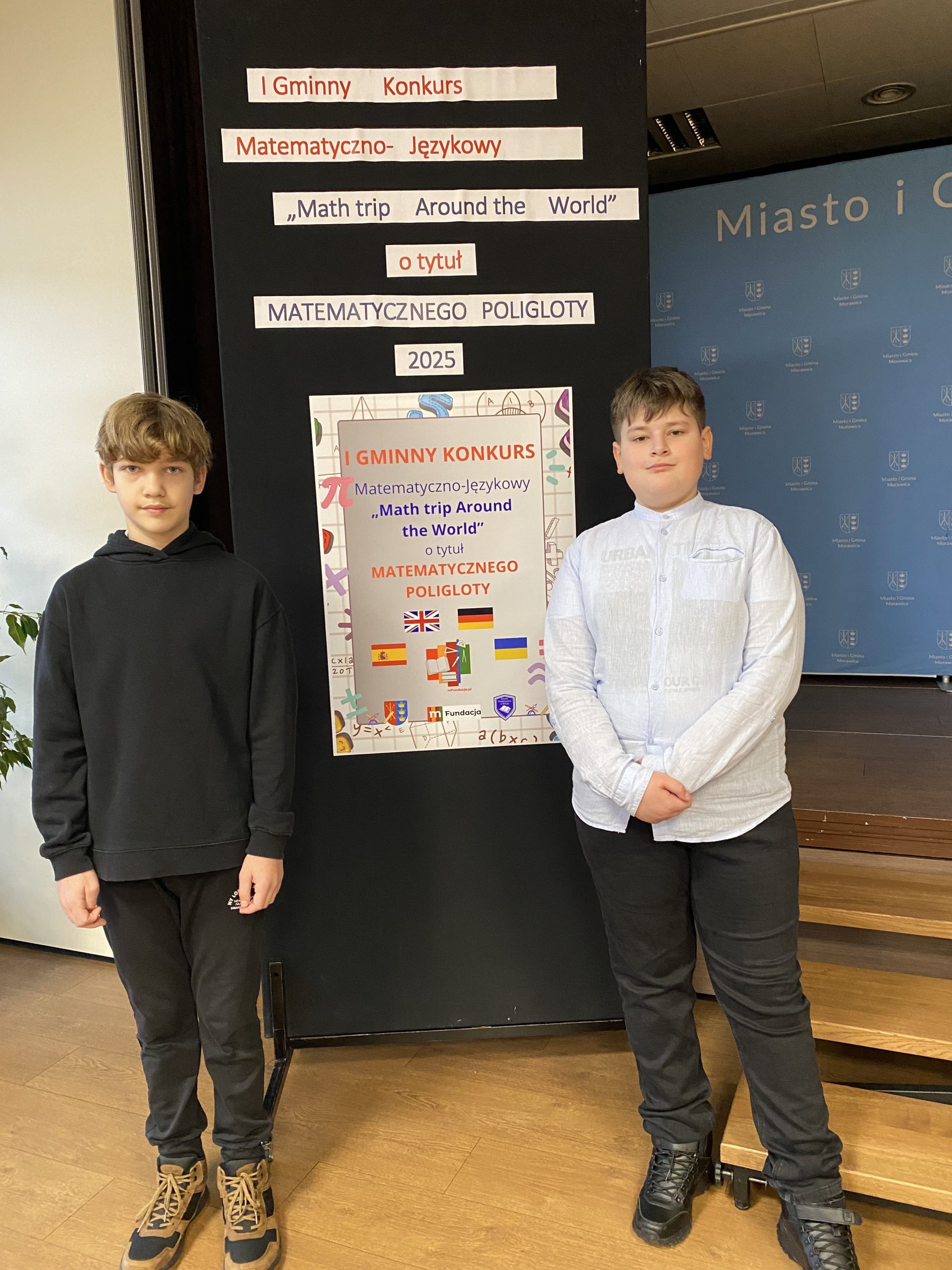Z ogromną radością informujemy, że Tomasz Brzostowicz i Adam Dziewięcki z klasy VIc, reprezentujący naszą Szkołę, zdobyli pierwsze miejsce oraz tytuły „Matematycznych Poliglotów 2025”! 🏆