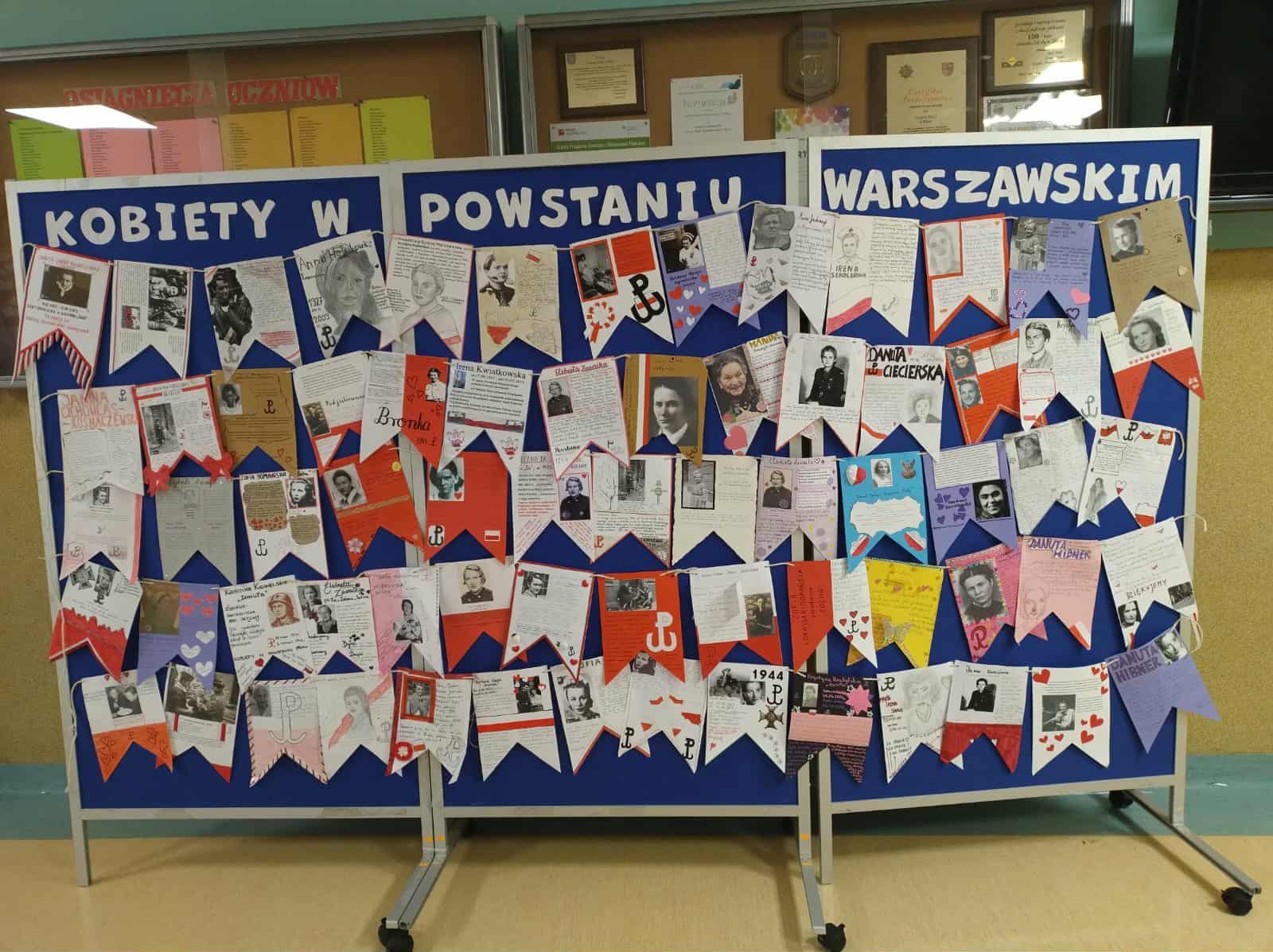 Nasza szkoła po raz kolejny zgłosiła akces do ogólnopolskiej akcji BohaterOn- kultywującej pamięć o powstaniu warszawskim. Tegoroczna edycja poświęcona była kobietom- uczestniczkom powstania. Na lekcjach historii, godzinach wychowawczych i zbiórkach zuchowych, przeprowadzono zajęcia o tematyce patriotycznej. Chętni uczniowie zostali zaproszeni do stworzenia ekspozycji w formie girlandy proporczyków. Każdy uczeń mógł przygotować własną zawieszkę z imieniem i nazwiskiem, pseudonimem , informacją o roli i zdjęciem wybranej uczestniczki powstania. Fragment kilkumetrowej girlandy został zaprezentowany w formie gazetki wolnostojącej na korytarzu szkolnym. Dodatkowym walorem edukacyjnym wystawy są osobiste podziękowania uczniów i wyrazy uznania dla, często cichych, bohaterek.