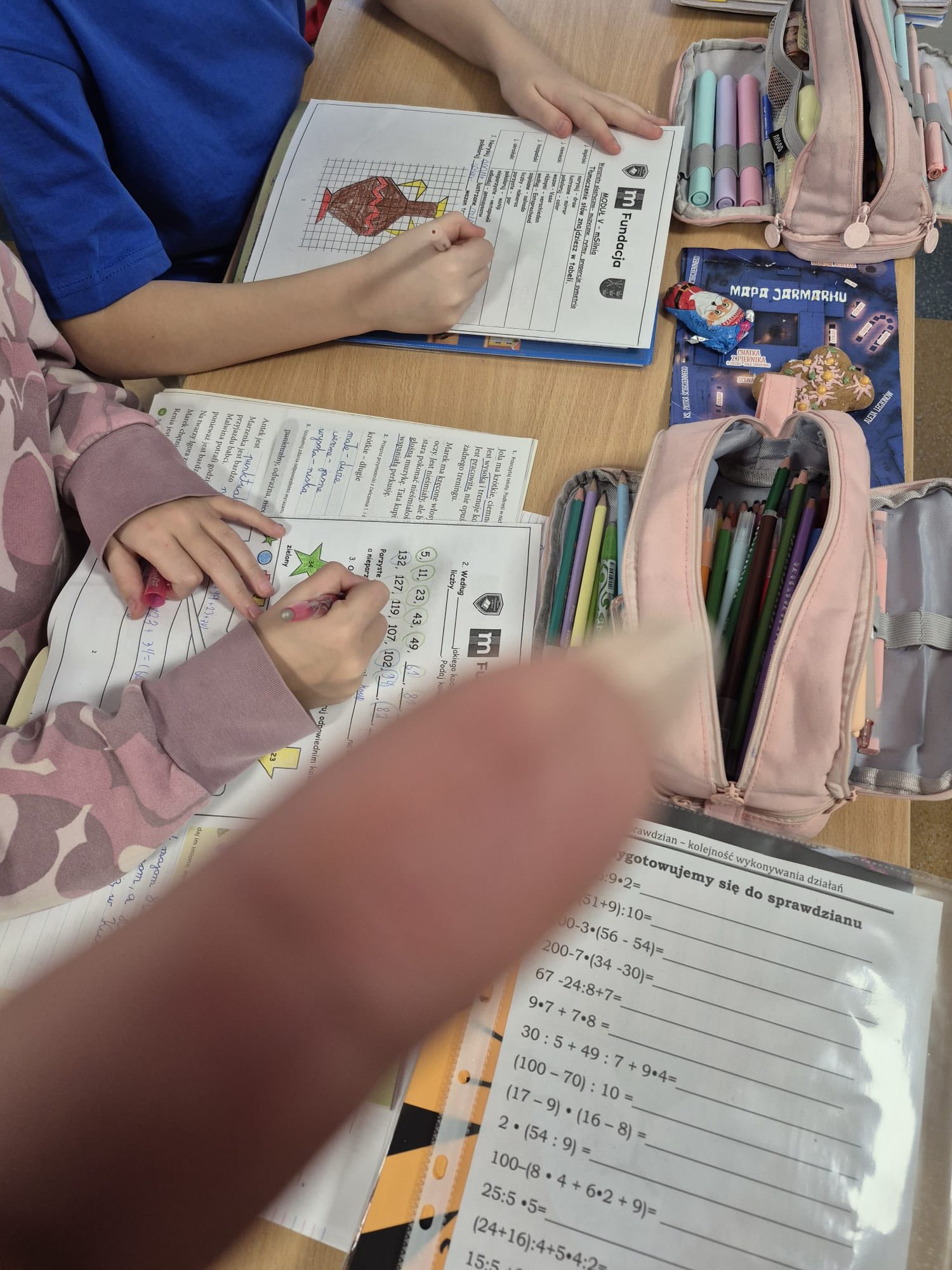 W module pierwszym uczniowie poznali nowy sposób wykonywania działań arytmetycznych, wykonywali obliczenia pieniężne i odkodowywali zaszyfrowane obrazki, dostrzegając, że matematyka to proces poszukiwania i rozwiązywania problemów.