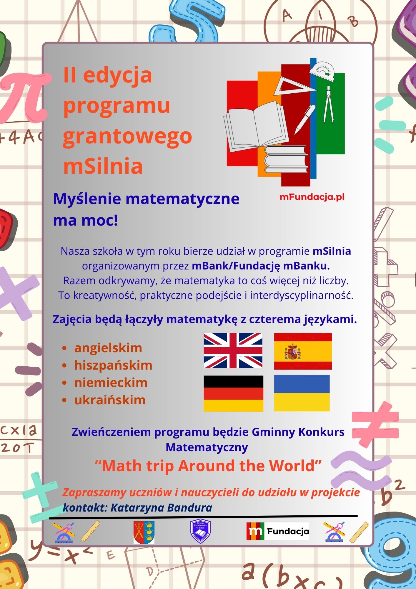 Uczniowie naszej szkoły z klas III–VI aktywnie uczestniczą w wyjątkowym projekcie edukacyjnym „mSilnia”, który w nowoczesny sposób łączy naukę matematyki z nauką języków obcych: angielskiego, niemieckiego, hiszpańskiego oraz ukraińskiego.