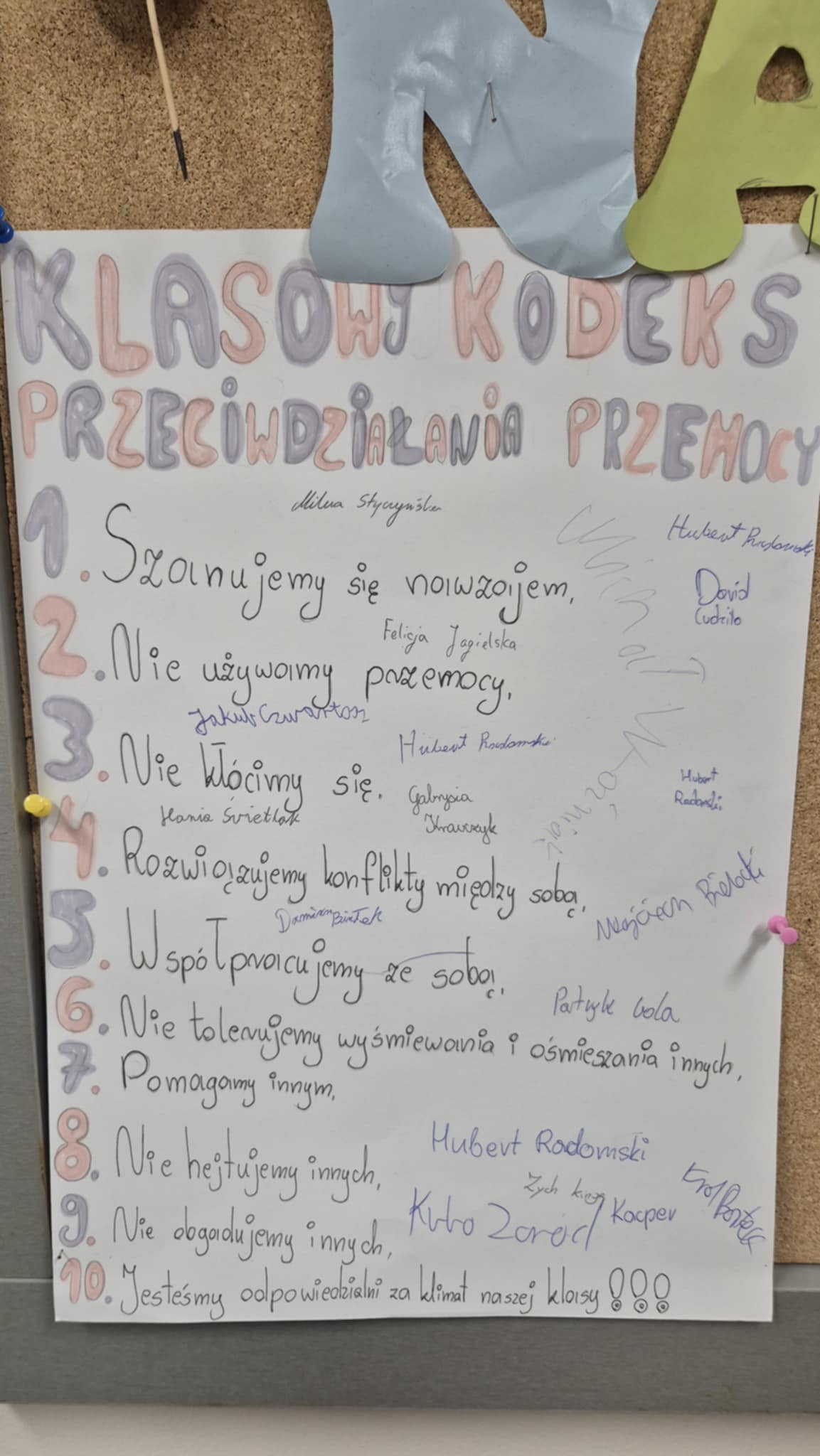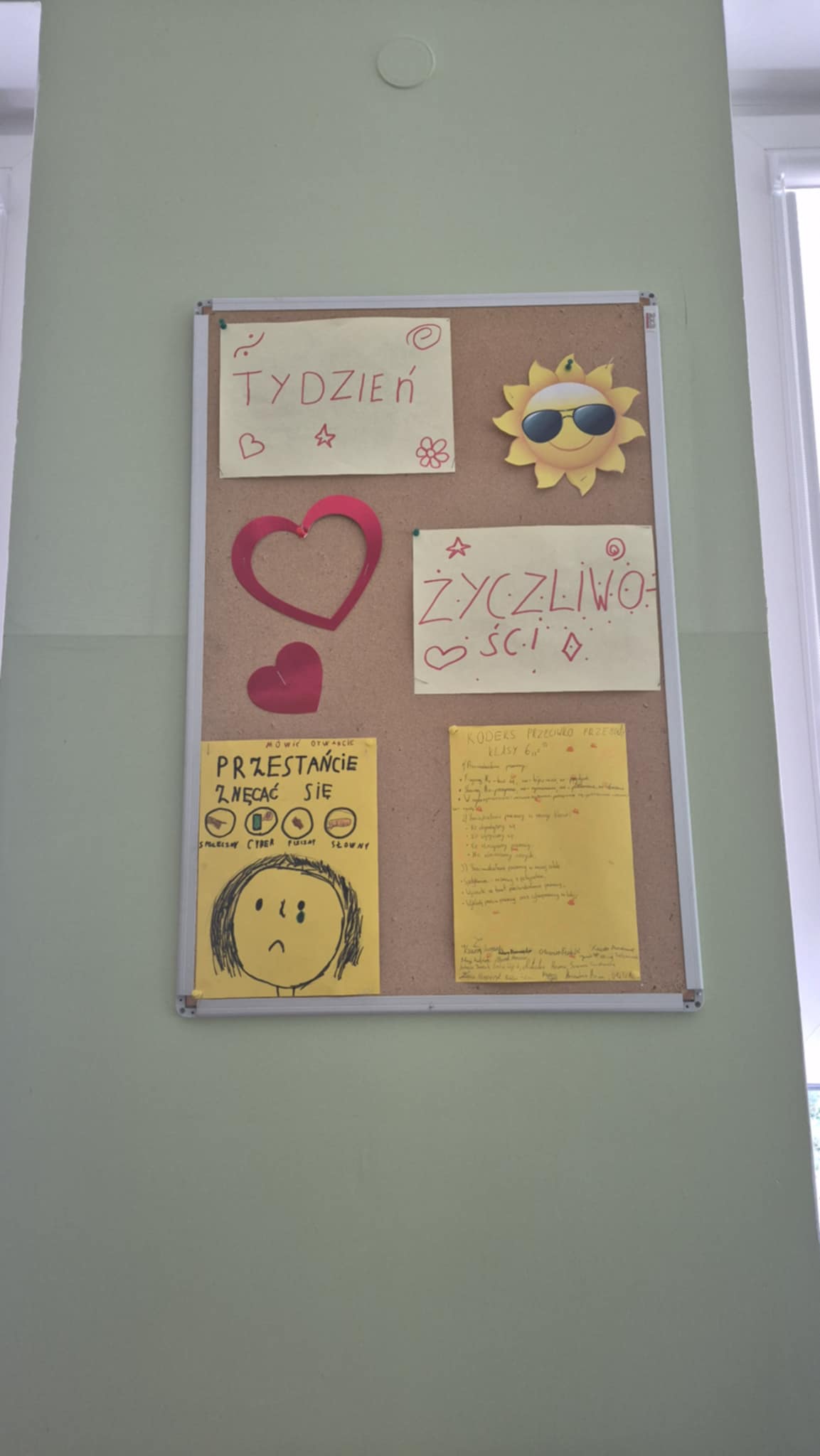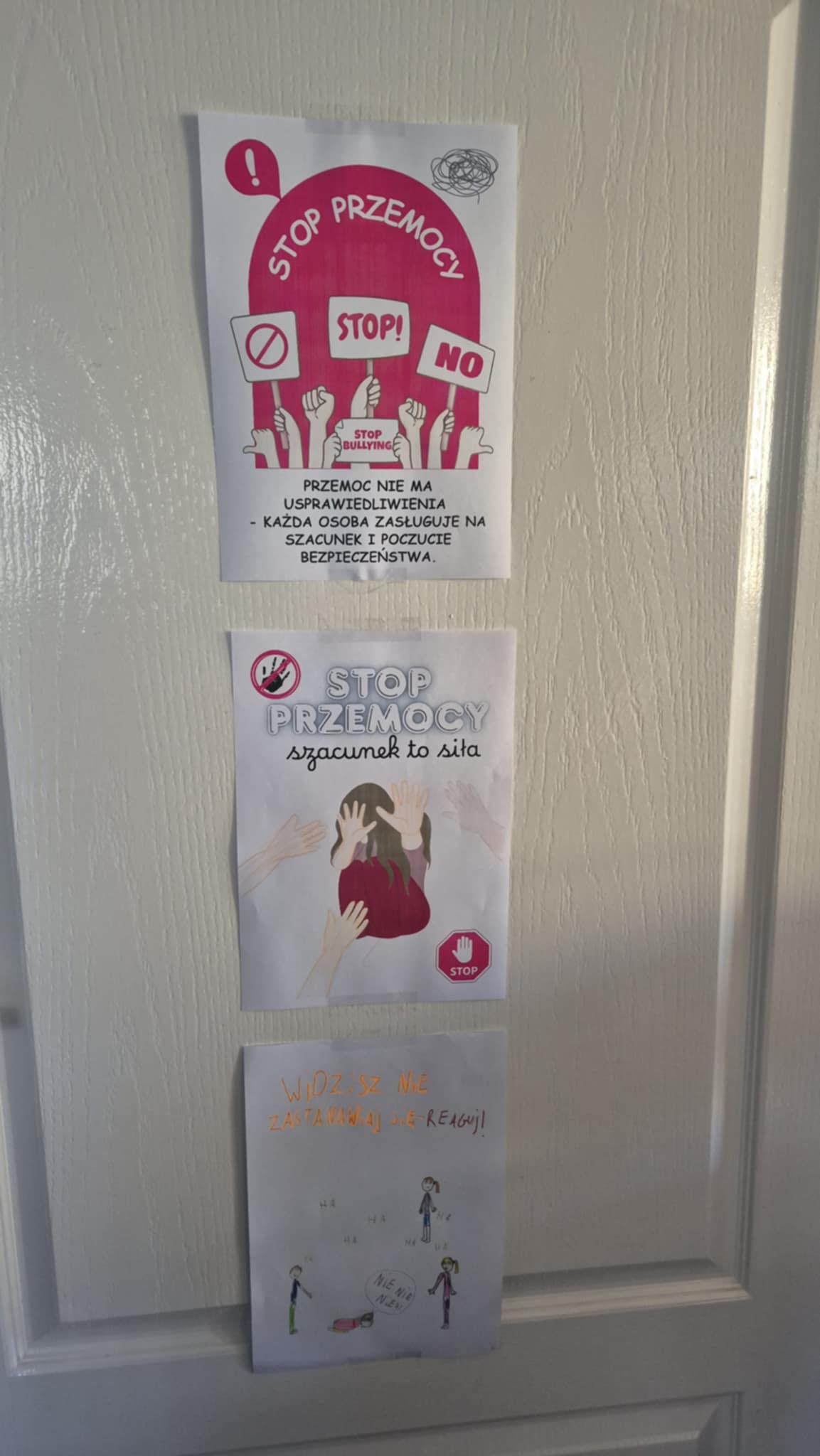 Na szkolnych korytarzach pojawiły się plakaty i banery przypominające o tym, jak ważne jest reagowanie na przemoc i wspieranie innych. Uczniowie brali udział w quizach, zajęciach, spotkaniach z policjantem i pedagogiem szkolnym, a także tworzyli swoje klasowe „Kodeksy przeciw przemocy”. Szczególnym zainteresowaniem cieszył się „Dzień Życzliwości”, podczas którego szkoła wypełniła się kolorem żółtym – symbolem otwartości i serdeczności.